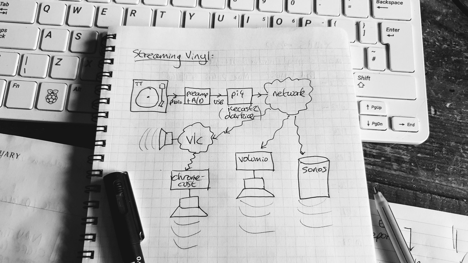 I recently acquired a new turntable with built in USB audio interface and although the inclusion of USB was not the main reason I bought it it did get me thinking about hooking it up to some sort of streaming server so the audio would be available anywhere… I have a few Google chromecast (audio) devices along with Volumio & Sonos players around the house so I started looking for a solution that would support them all.