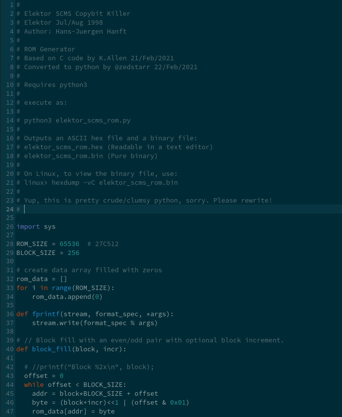 Recently I retrieved my Elektor SCMS “copybit killer” from storage and a quick Google search brought up this forum post from around a year before – someone was looking to build the project and needed a (binary) image of the ROM contents…