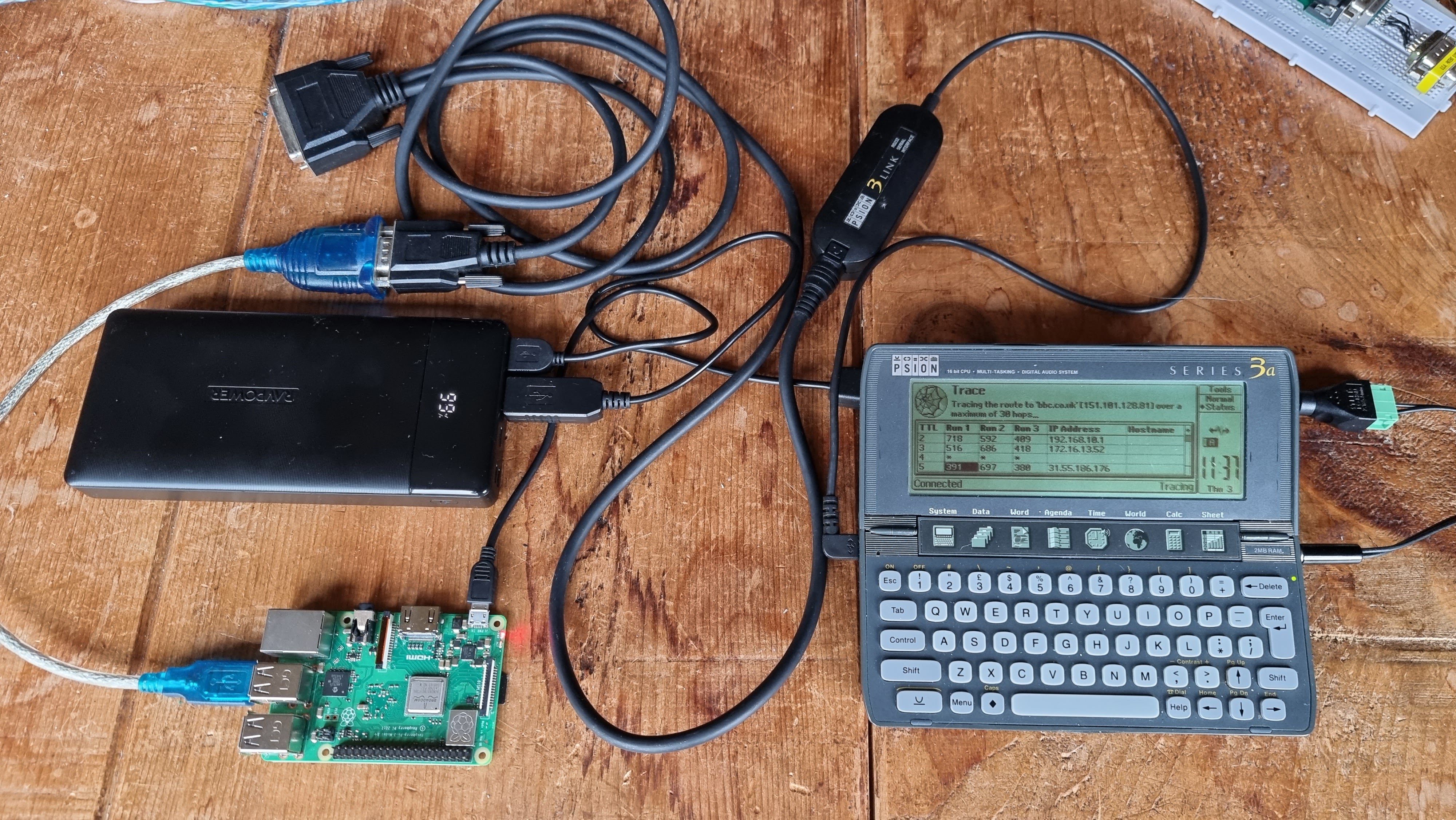 Conclusions: it can be done, but only really for the sake of the challenge or the novelty & nostalgia factor. I had the best success with FreeVT/lynx with the Raspberry Pi doing most of the work and the Psion 3a just acting as a dumb terminal. Much better to let a modern computer handle all the modern stuff (HTTPS etc.) and translate that to a much simpler vt100 display. In my opinion there’s no real utility in connecting these old machines to the internet – assuming you can find some useful text based or HTTP1.0 services, the speed and response time over the serial link is so frustratingly slow in a world that’s left these machines behind, a world where high definition video will stream instantly on the phone in your pocket… I had much more fun controlling my 1990s tape deck with the Series 3a ๐