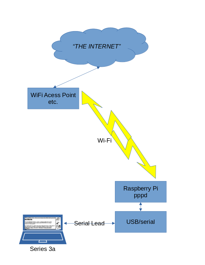 1. the Psion actually “properly networked” (i.e. running a TCP/IP stack) – run pppd on another (internet connected) computer and connect via 3Link–USB/serial to use the PsiMail suite or