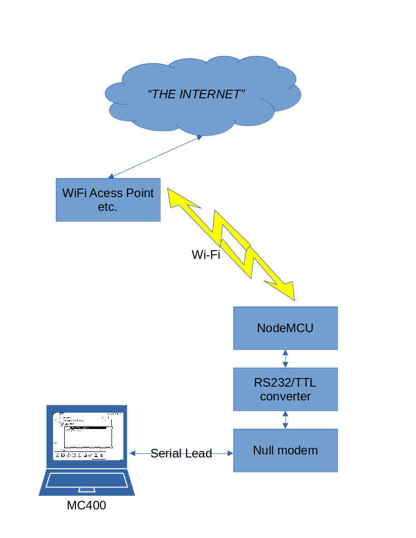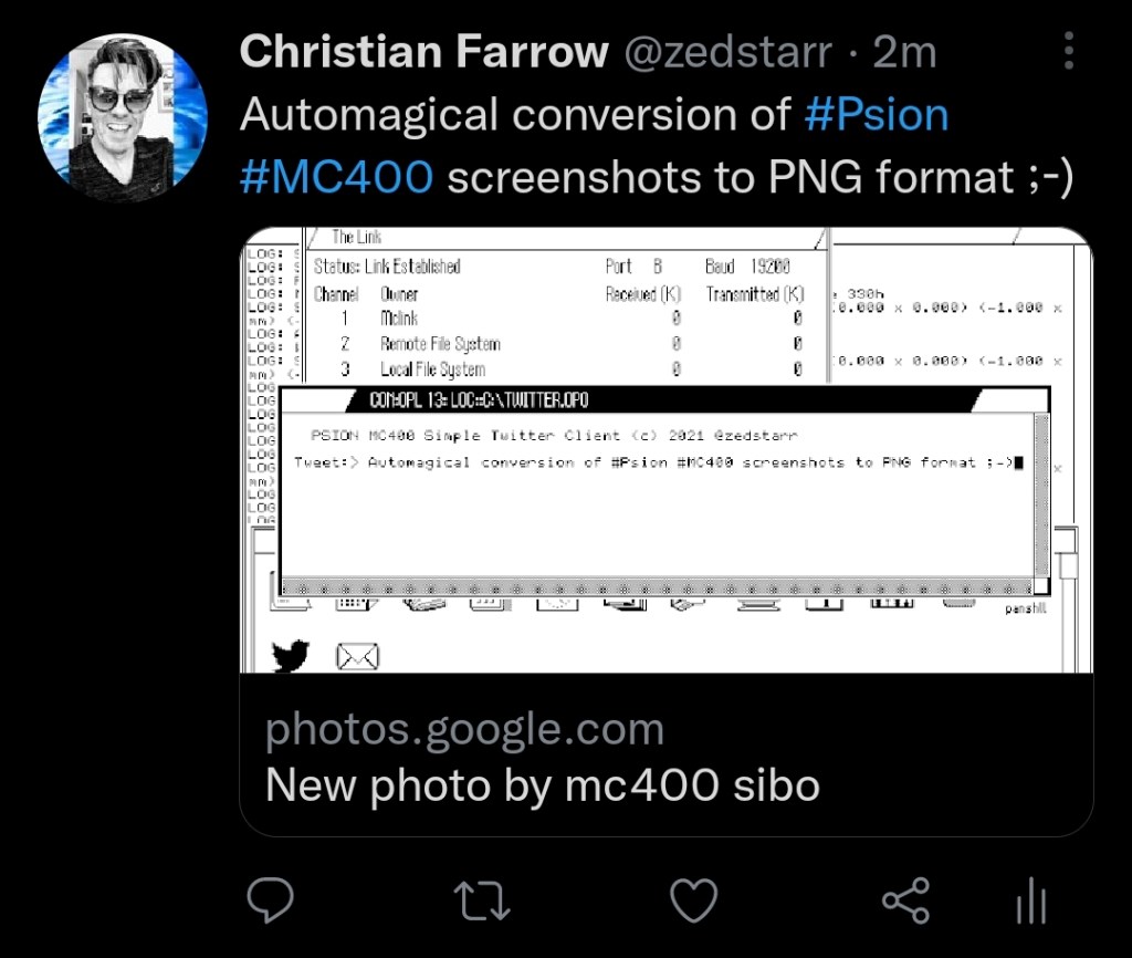 Update: Sep 2021 – utilising 2 x serial links to the same Raspberry Pi (one for terminal, one for file sharing) and with some OPL code for the MC and some shell scripts for the Pi I’ve managed basic sending of tweets & emails directly from the MC400: see here ๐