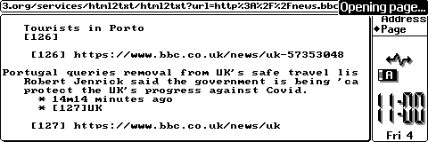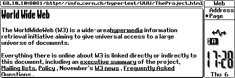 The Series 3a fares a little better; in 1996 Psion released “PsiMail” – an internet suite featuring an email client and web browser so there is actual TCP/IP support but again it assumes connection via serial modem so it requires ppp over the serial link. The browser (credited to “Copyright Teleca Ltd 1996-1997” as it starts) is HTTP1.0 only – which means it’s severely crippled in compatibility with almost all of the web in use today. We can use WebOne or other “html2txt” proxies to make some modern sites more readable but results are patchy to say the least.