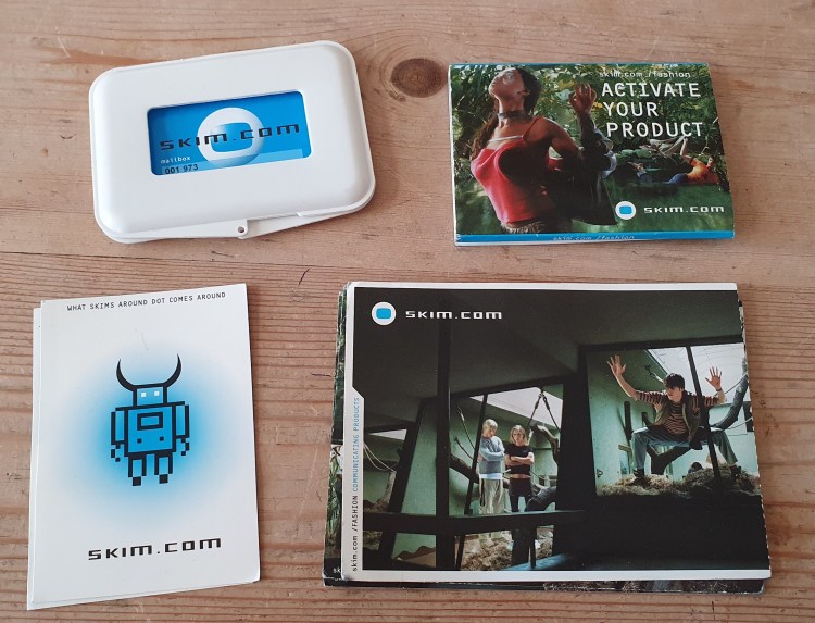 I think I owned 3 skim.com email addresses in total, the bag, a pair of trousers with skim.com ID/email address on the hem by the bottom of one of the legs (typing that out just now has really brought home to me the ridiculousness of the whole proposition!) and a lanyard. Halcyon days!