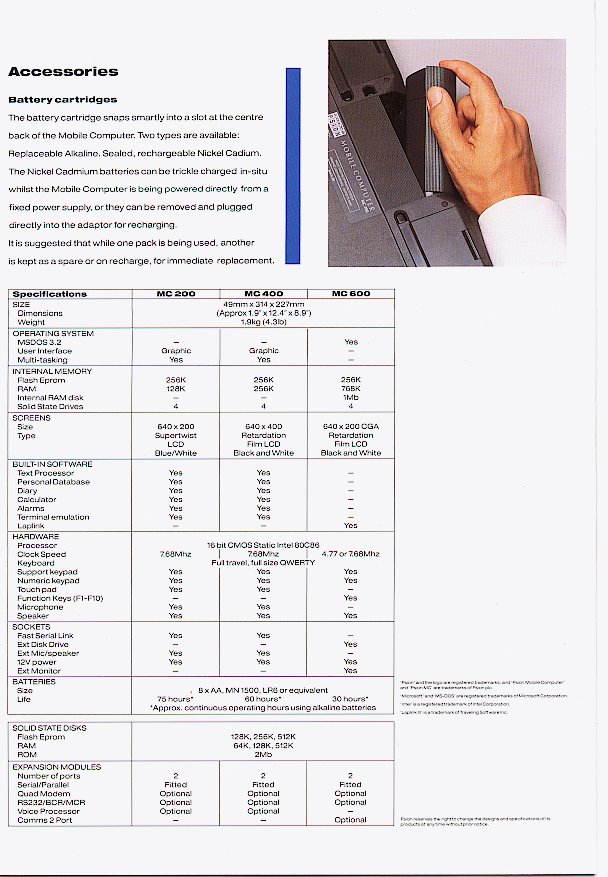 TTY.HSS – is the “High Speed Serial” port – not sure if any HSS peripherals were ever released that would be supported by the MC400, the MC range brochure shows an external 3.5″ 1.44M floppy drive that looks like it might be plugged into this interface on the MC600 (DOS-version) although the MC600 is different hardware (no touchpad, extra row of Fn keys):