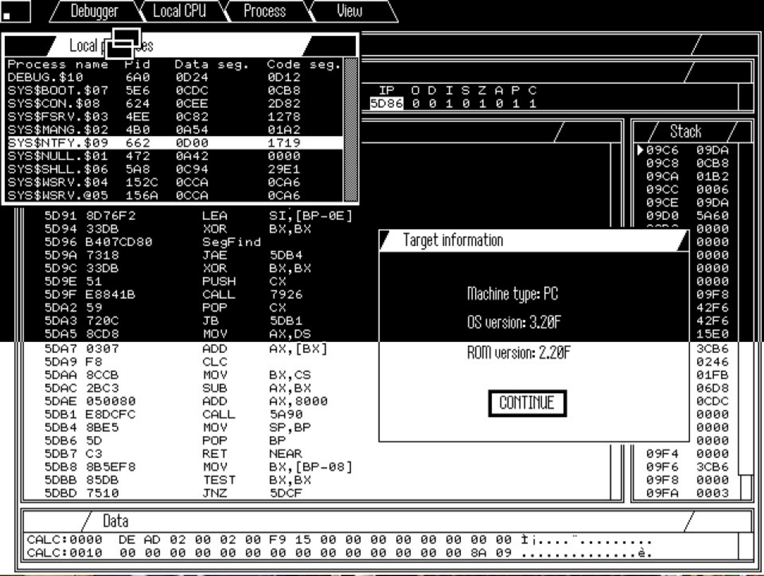 Interestingly the (DOS-based) Psion SIBO SDK uses a version of the MC GUI environment as its debugger (SDBG.EXE):