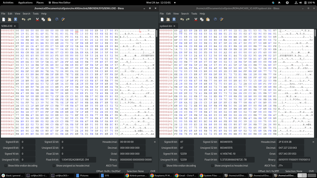 Poking around with a hex editor shows what looks very similar to the MC400’s ROM dump embedded in the SDBG.EXE file at offset 0x400…