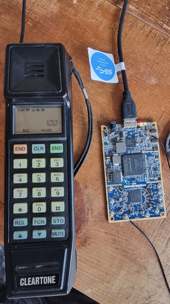Thanks to the excellent work done by Andreas Eversberg on osmocom_analog I managed to revive a Cleartone CTN9000 ETACS “handportable” mobile phone from the late 1980s using a Lime SDR to emulate the old analogue radio network.