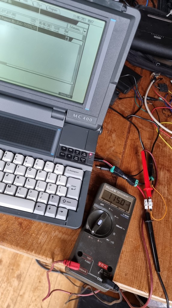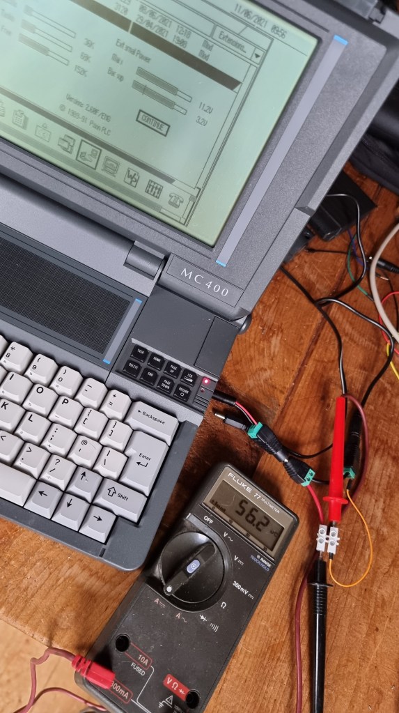 I made some current consumption measurements on the old devices to make sure the new USB-DC converters were up to the job. Multimeter readings on the MC400’s 12V external supply show current draw is approx. 50mA when idle up to about 120mA when busy.