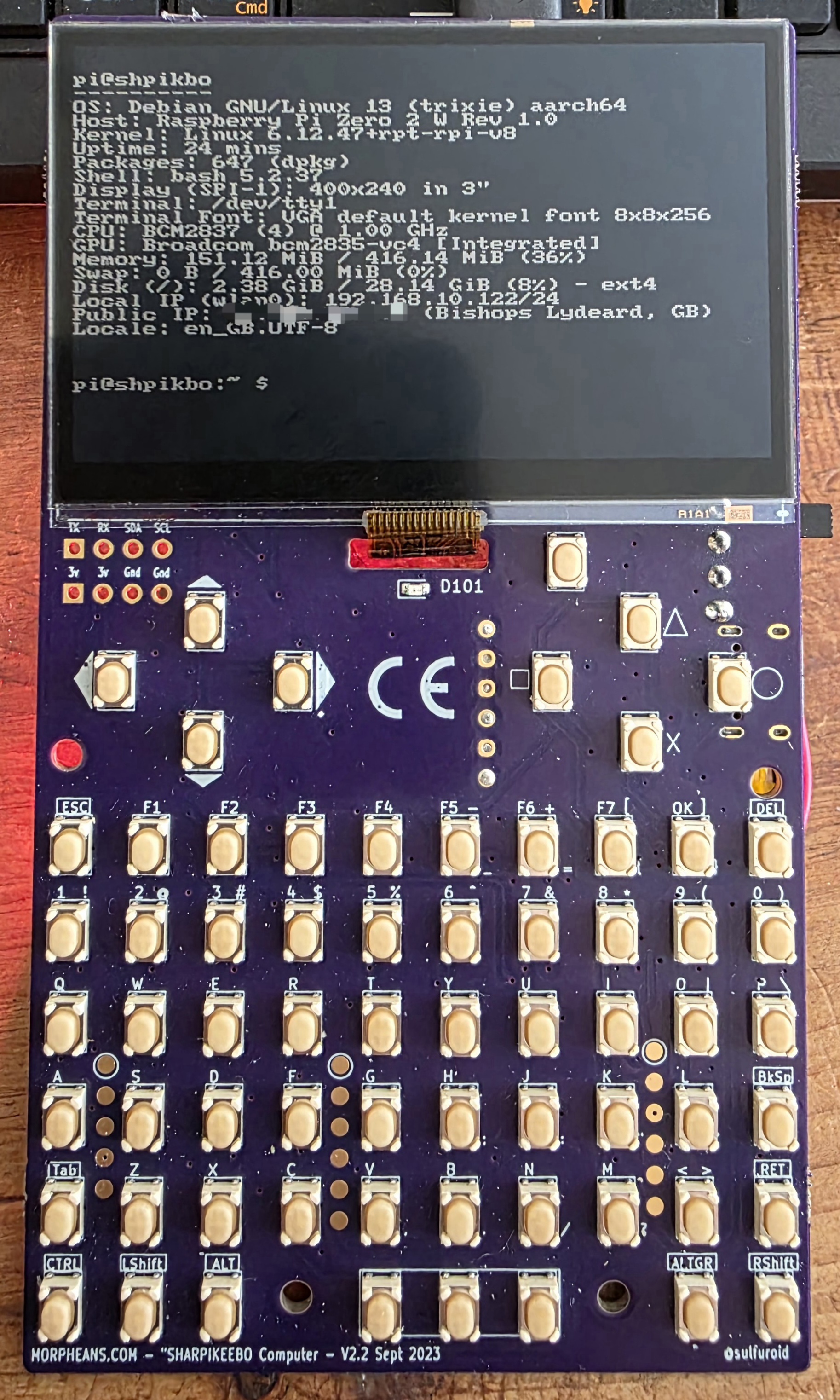 I was instantly drawn to this little cutie as soon as I read this article – a Pi Zero powered tiny handheld with a super-crisp Sharp 400 x 240 2.7″ LCD, LoRa module & 56-button keypad… as soon it was announced in Sep 2022 on their crowd-supply page that they’d fixed their CE-marking issues and it was available in Europe I placed my order... and waited… and waited…