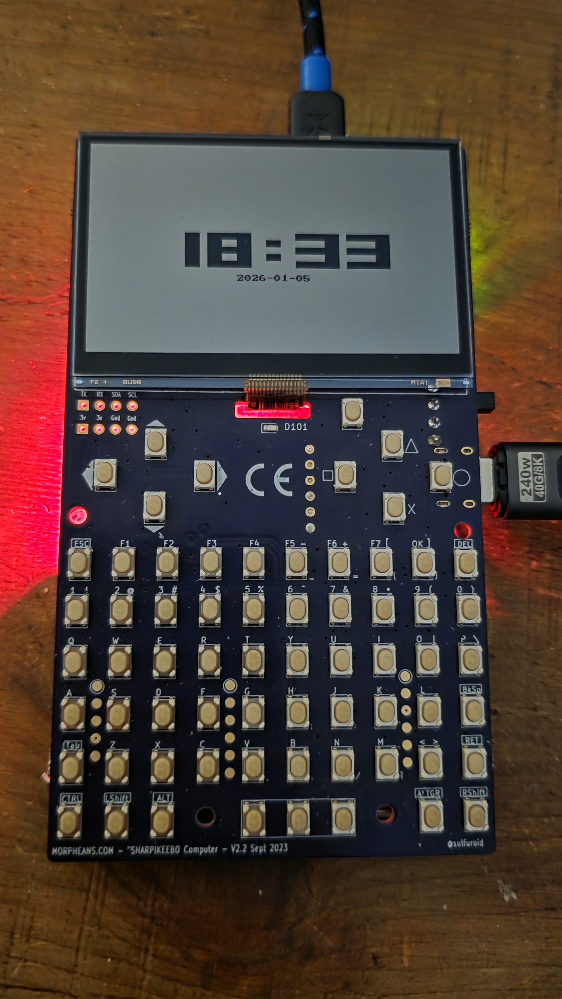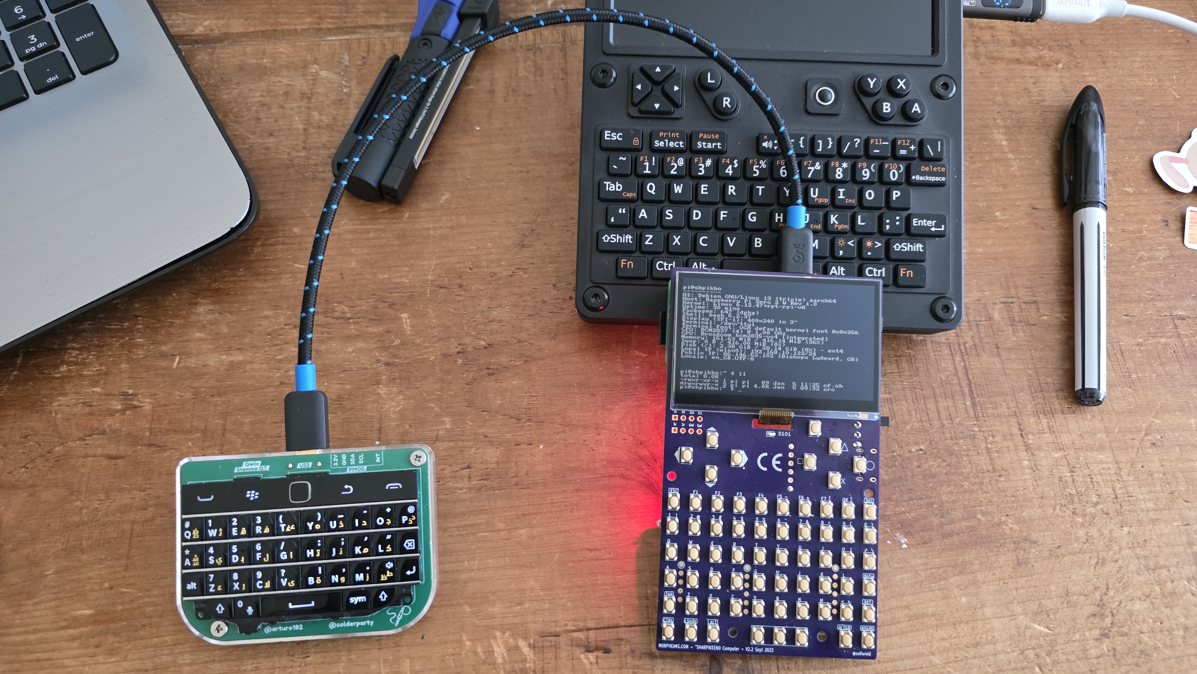 - No electrical connection between keypad and Pi – using a direct cable (or via a USB hub) shorts/disconnects the Pi’s power – see https://github.com/ccadic/sharpikeebo/issues/9