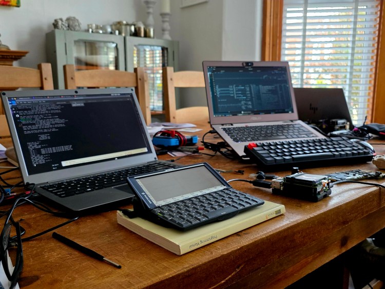 So now I have a working machine – but how to get data on/off it…? My first attempts were via CF card. I dug out an old 512MB Sandisk (refurbished!) CF disk that I’d used back in the day with my Canon Digital Ixus camera with mixed results. These old EPOC R5 machines are notoriously finicky when dealing with CF cards and I struggled though several iterations of formatting the disk in the Psion and writing data to it via a UGREEN USB/CF adapter plugged into my Linux (Fedora 43) laptop. The MC218 randomly complains the card is corrupt, but powering off, taking the card out and re-inserting it seems to fix that.