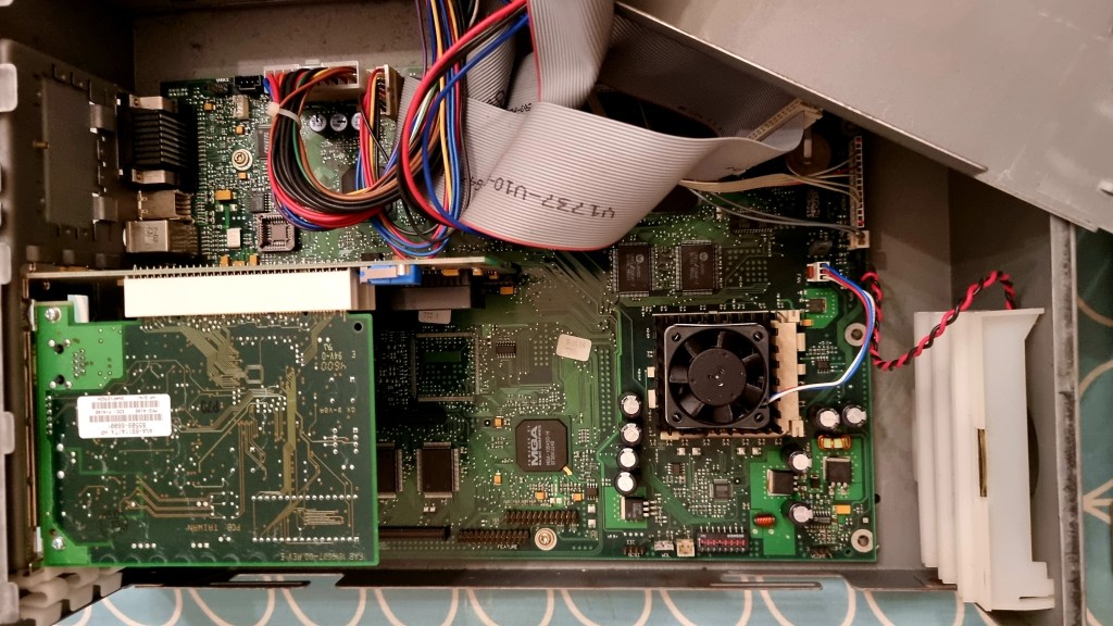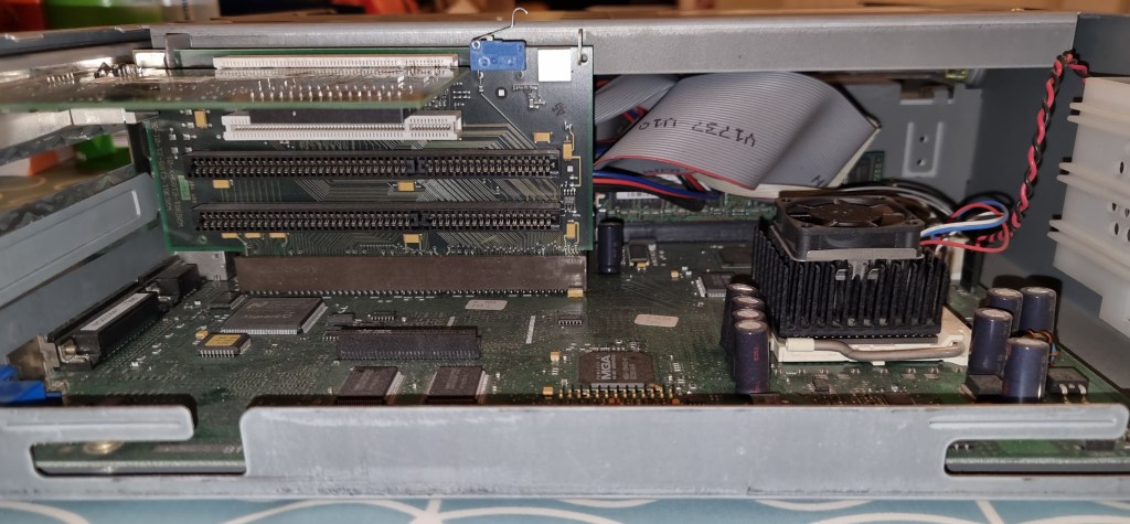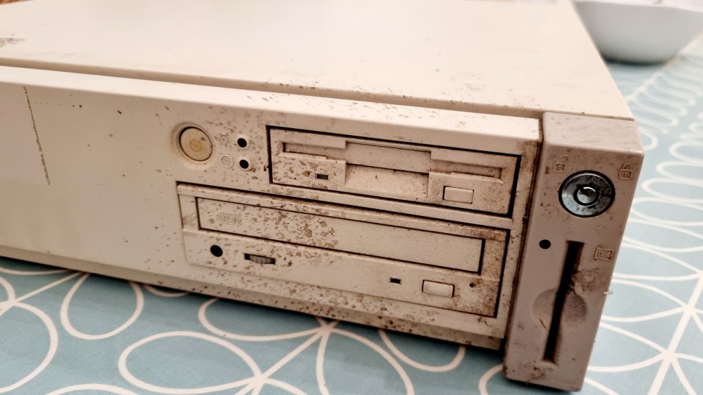 A fine specimen of the type, this Siemens Nixdorf Scenic Pro C5 still feels pretty solid – engineered with steel casing and components where some (Dell?) were using flimsy plastic. I upgraded this with a P200MMX CPU donated from another machine.